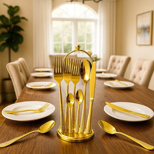 24 Piece Luxury Gold Cutlery Set – Stainless Steel Flatware for 6 People