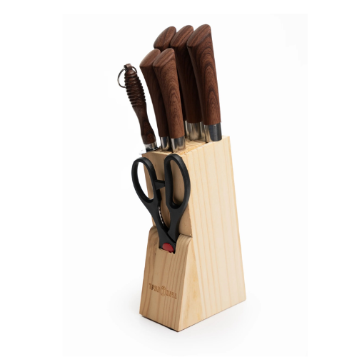 The set comes with a durable and stylish storage stand that not only keeps your knives organized and within reach but also adds elegance to your kitchen countertop.