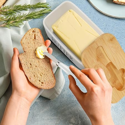 Ceramic Butter Box with Natural Bamboo Lid – Kitchen Tableware