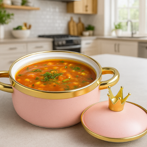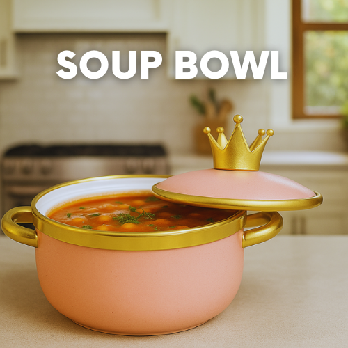 Bring a royal touch to your dining table with the HomlyTicks Ceramic Soup Bowl with Crown-Shaped Lid – a stunning combination of elegance, function, and charm. Designed to impress, this bowl features a unique crown-style lid that not only looks luxurious but also keeps your food warm and covered until served.